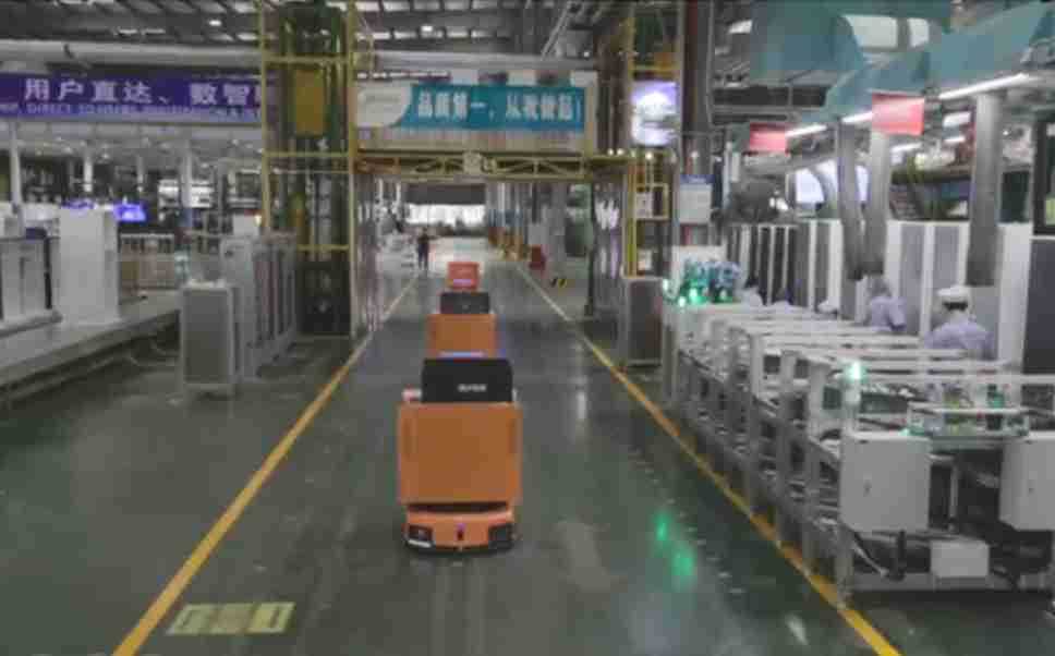 为车载冰箱物流配送打造的智能解决方案,,包含产中物流通过潜伏举升AMR搬运至线边,,,,产后成品物流智能仓储,,流程包含产中物流智能齐套入库,,,线边安灯叫料AMR智能配送至线边,,,成品入库、、、出库,,,通过无人堆高车机器人,,,智能仓储管理替代人工作业管理,,,实现更高存储、、、、更高效率、、、更具柔性化的解决方案。。。